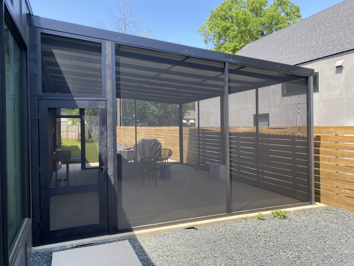 We offer screen repair and rescreening, pool enclosures, screened patios and lanais, motorized screens, carports and covers, patio covers, gazebos, outdoor structures, and porch and balcony railings.